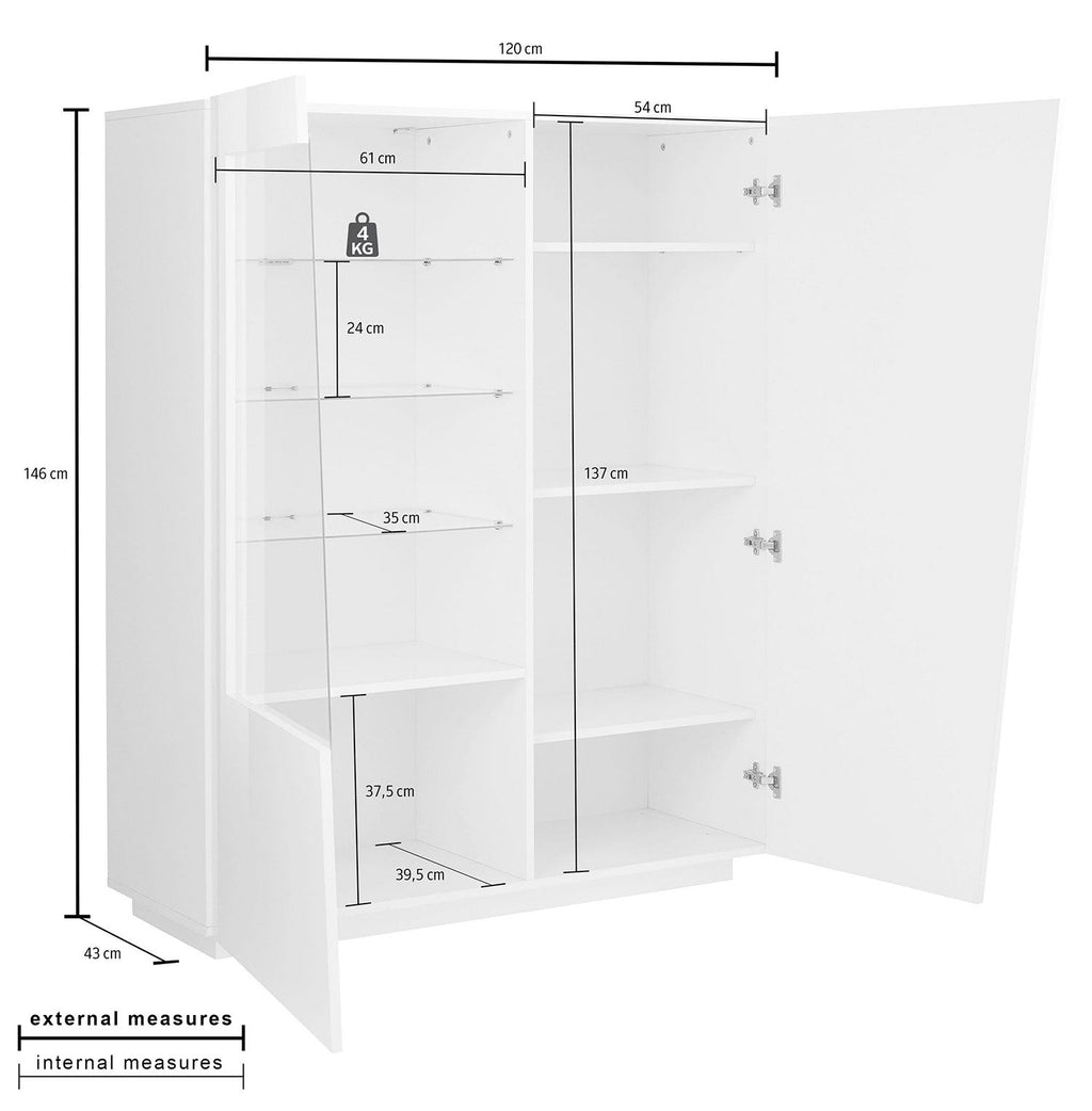 Vetrina 2 Ante 120x43x146 cn Vega Bianco Lucido