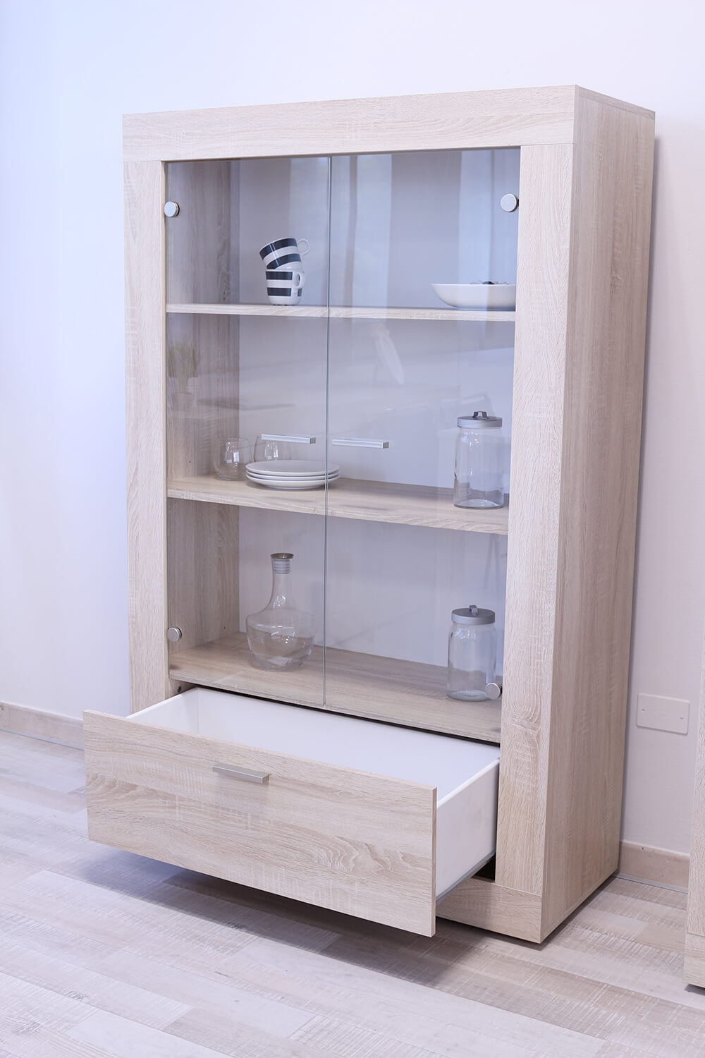 Vetrina Mobile da Salotto Con 2 Ante e 1 Cassetto in Melamina e Vetro Temperato. Un must per il vostro living, con il suo stile classico ma non troppo questa vetrina sarà adatta al vostro soggiorno ed offre la sicurezza del Made In Italy a marchio TFT Serie RusticCaratteristiche: