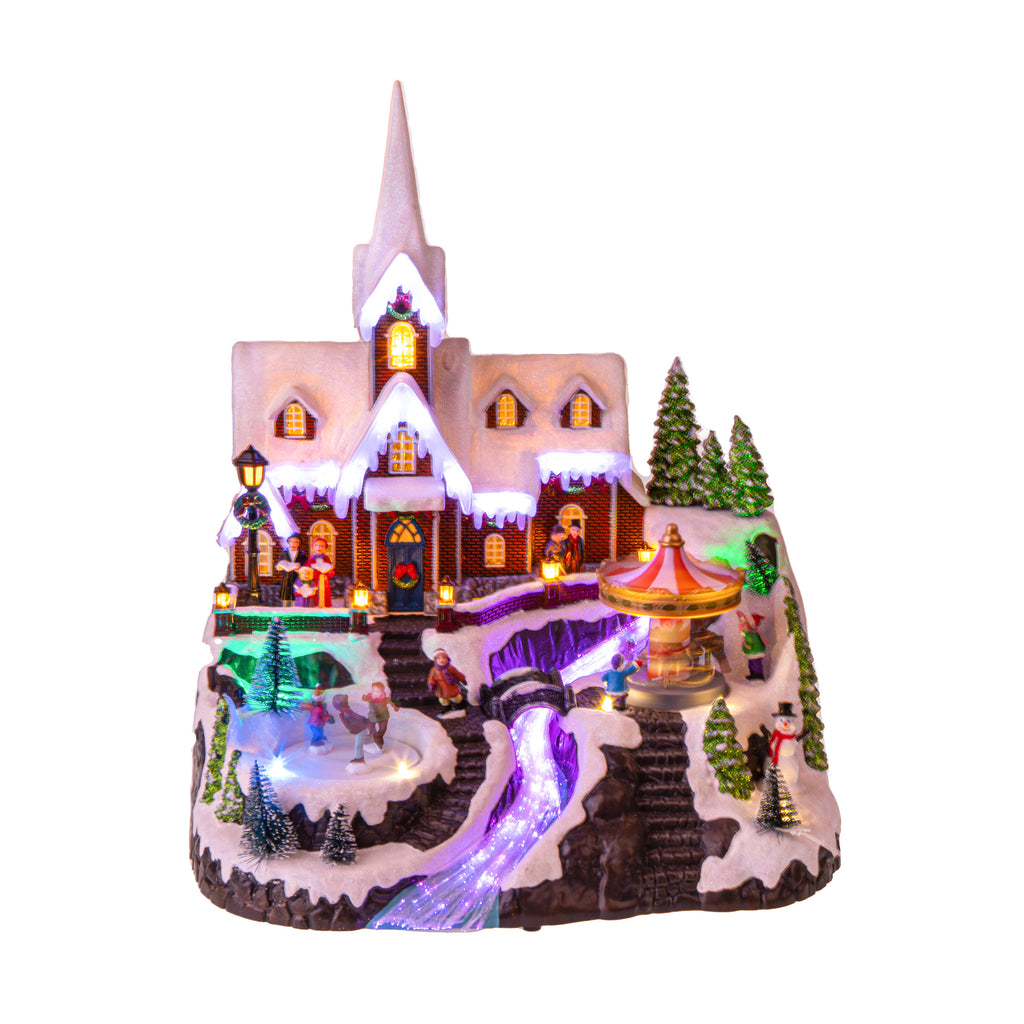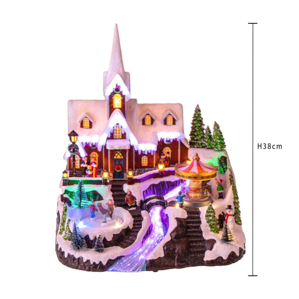 Villaggio Natale musica luci e movimento 38 cm in Resina