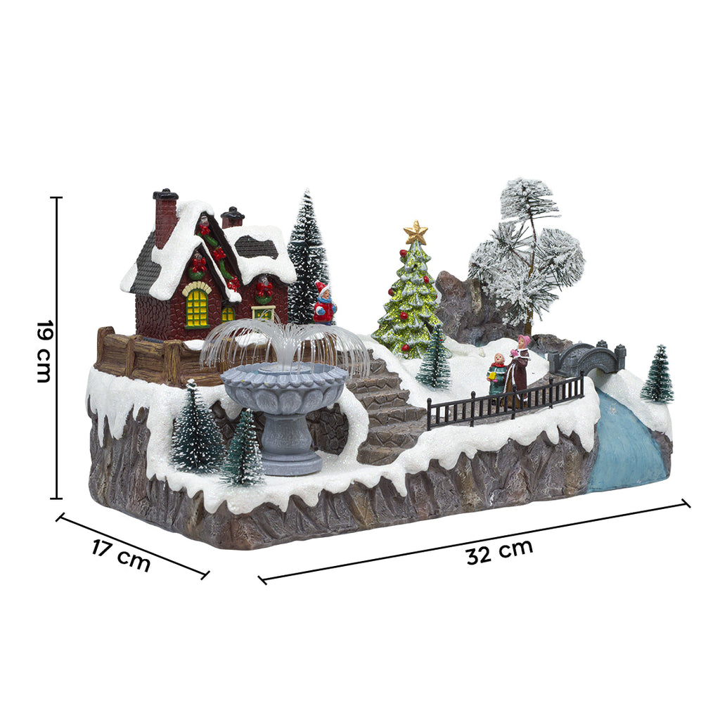 Villaggio Natalizio 32x17x19 cm con Fontana Luci Suoni e Movimento