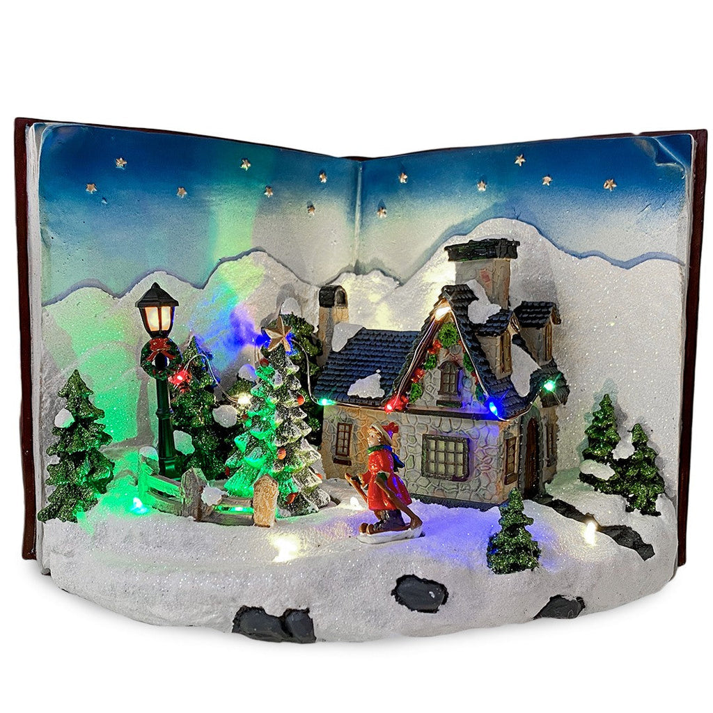 Villaggio Natalizio 33x19x22 cm Libro Blu con Luci Suoni e Movimento