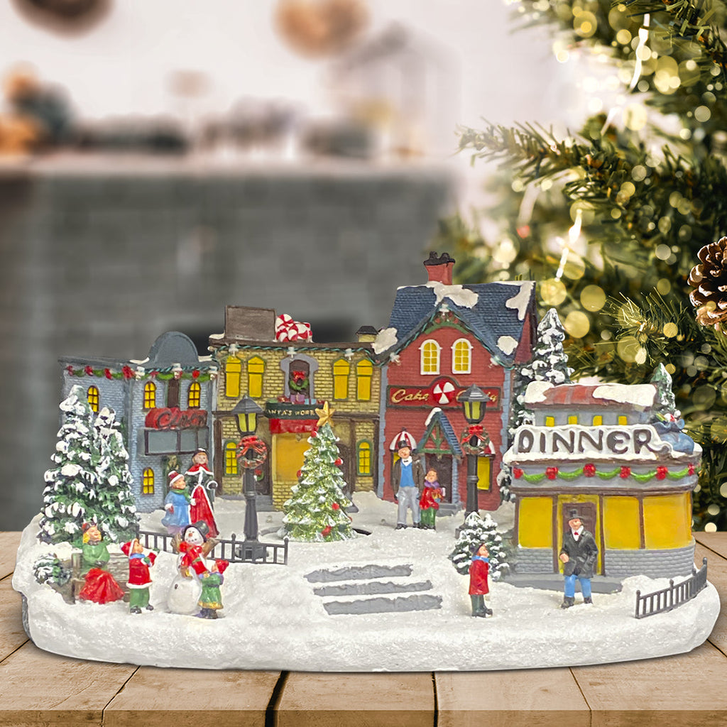 Villaggio Natalizio Città di Natale 41x30x22 cm con Luci Suoni e Movimento