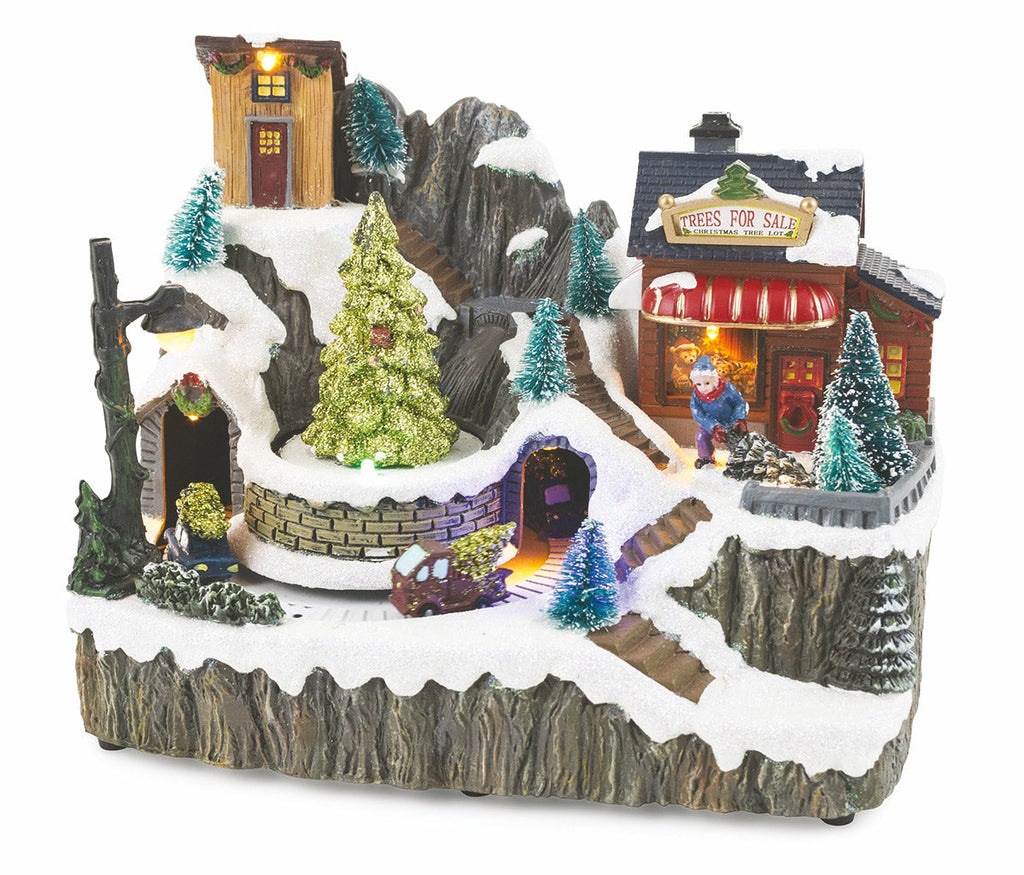 Villaggio Natalizio in Plastica con Luci e Suoni 23x15,5x17,5 cm Soriani Albero e Auto