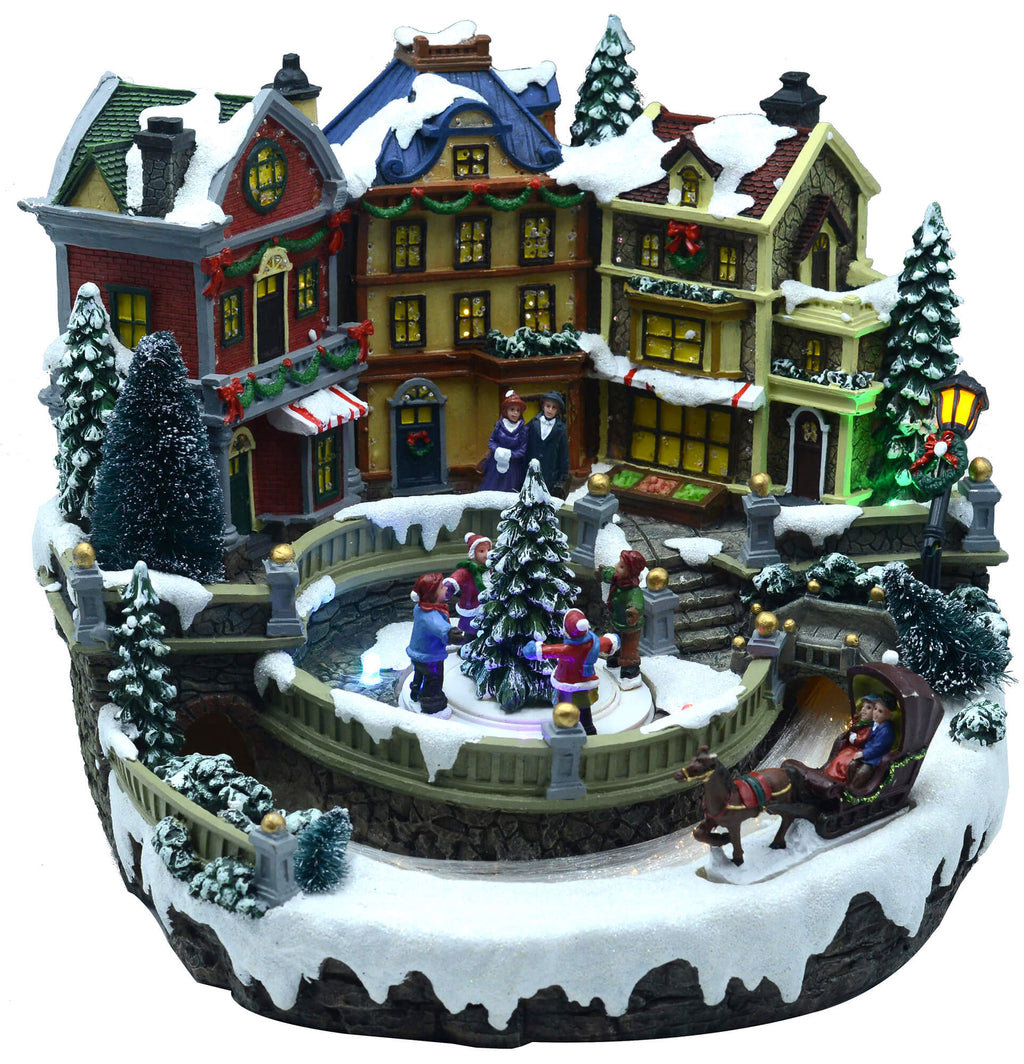 Villaggio Natalizio in Resina Albero con Luci Musica e Movimento 32x30xh26,5 cm