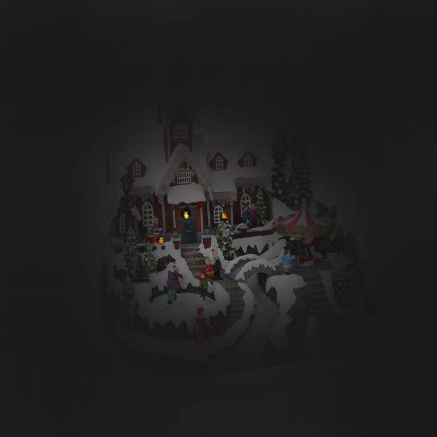 Villaggio Natalizio in Resina Chiesa e Pista di Pattinaggio con Luci e Suoni 33x31xh38 cm
