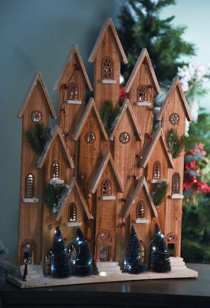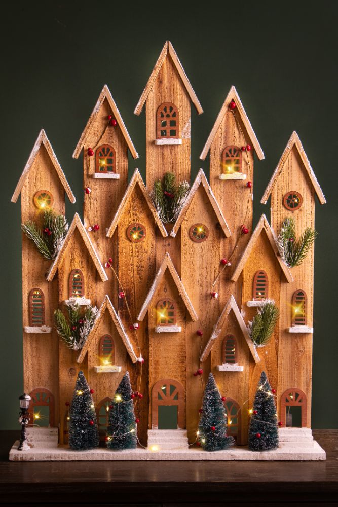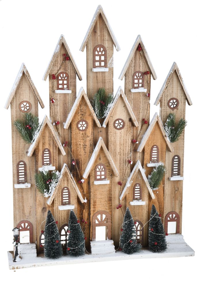 Villaggio Natalizio Innevato con Led 85 cm in Legno e Plastica