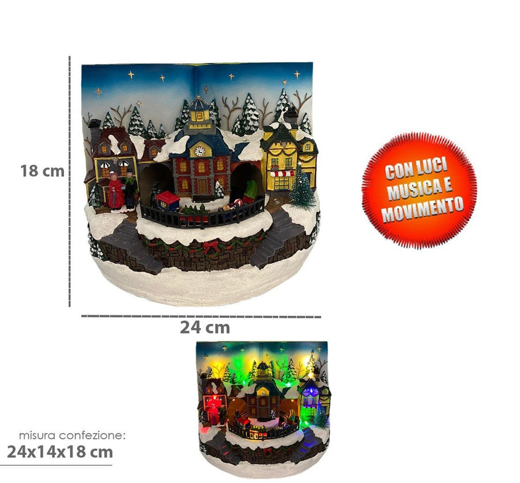 Villaggio Natalizio Libro 18x24 cm con Luci Suoni e Movimento
