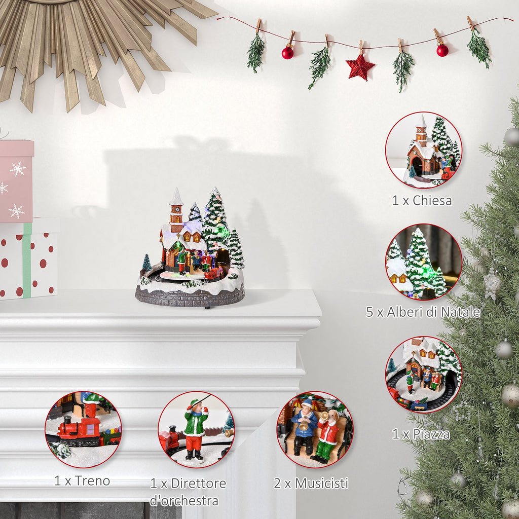 Villaggio Natalizio Luminoso con Trenino Girevole Musicisti e Luci LED Multicolore