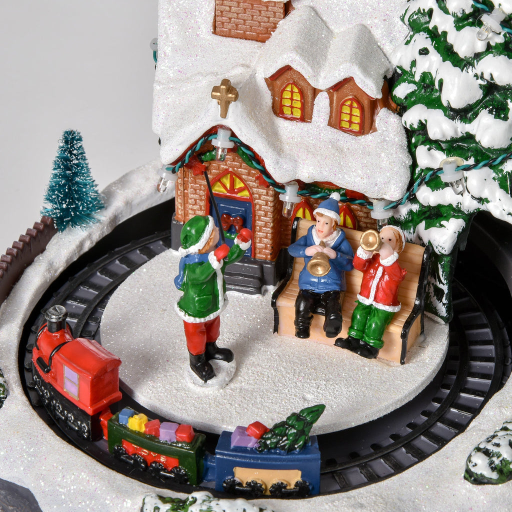 - 1 chiesa, 5 alberi di Natale, 1 piazza, 2 musicisti, 1 direttore d'orchestra e 1 treno in movimento su un binario rotante