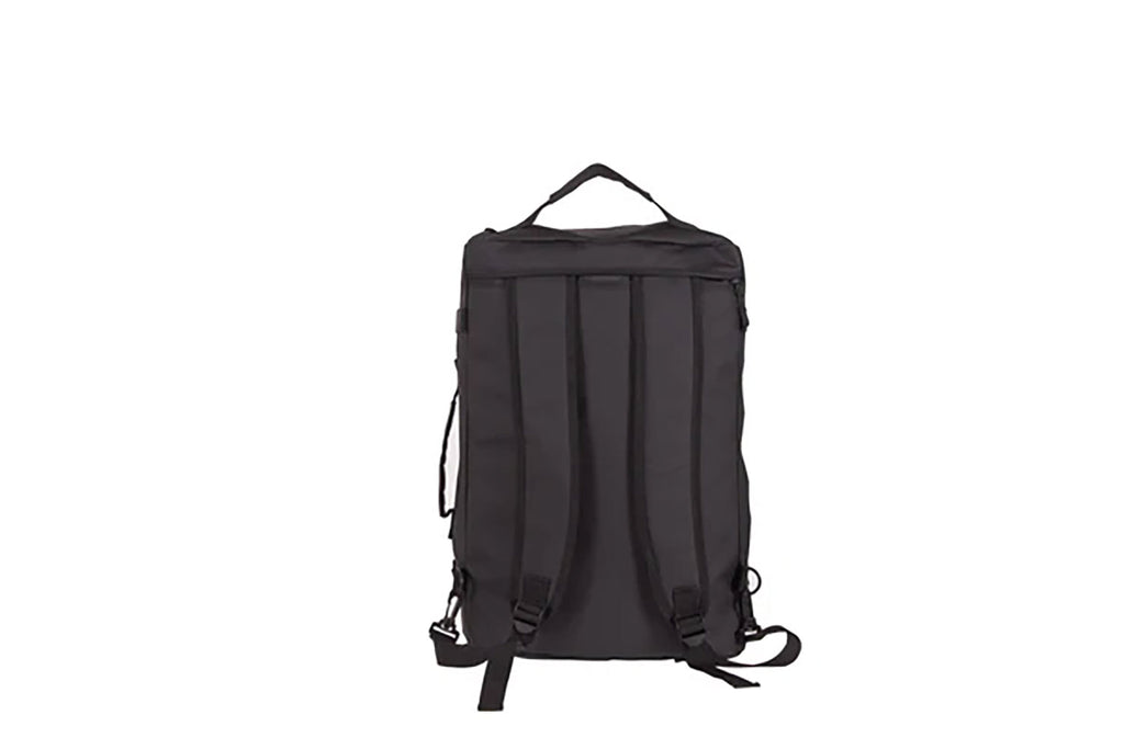 Zaino/Borsone tempo libero in materiale waterproof, doppia tasca frontale, scomparto separato porta scarpe. Maniglia superiore e laterale, spallacci imbottiti e regolabili, ampia apertura laterale tipo "valigia".